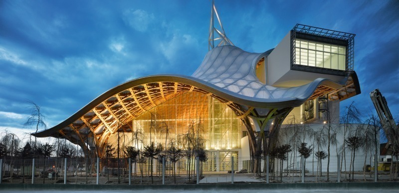 Sie haben einen Bau entworfen, der von Ferne an ein Zirkuszelt erinnert und durch eine geschwungene Dachkonstruktion aus Holz besticht. Die dichte Holzkonstruktion besteht aus laminierter Fichte, welche mit einer wasserdichten, weissen Membranhaut aus Glasfaser- und Teflon beschichtet ist. Dadurch wirkt das nachts beleuchtete Gebäude transparent und die darunter liegende Konstruktion wird sichtbar.